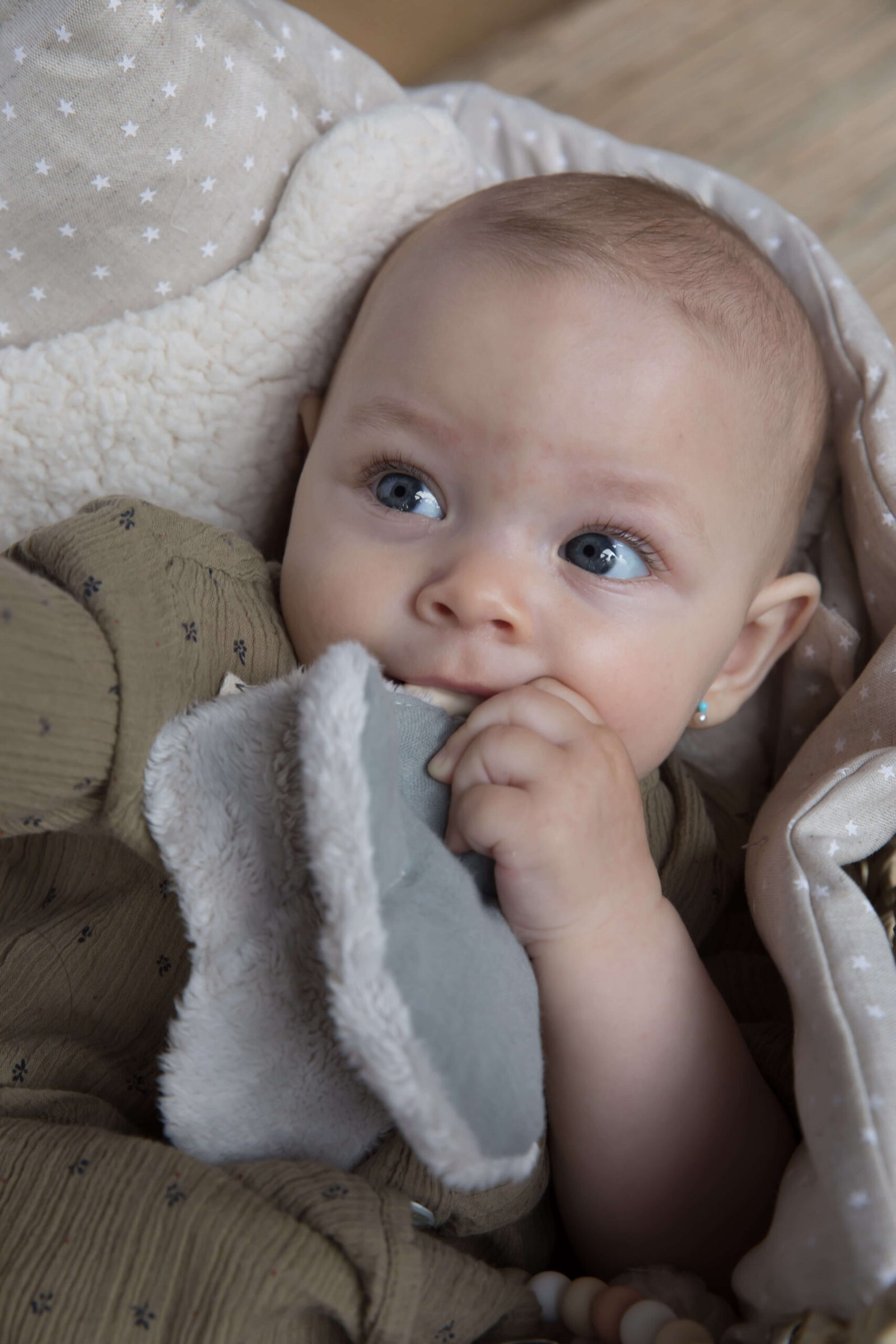 Des petites ailes magiques fixées à un anneau de dentition pour bebé en silicone qui aideront à soulager les maux lié à la dentition et éveiller les sens de bébé grâce aux couleurs et aux textures douces. Notre petit papillon est fait de la lange en coton 100% en combinaison avec la douceur de notre tissu polaire.