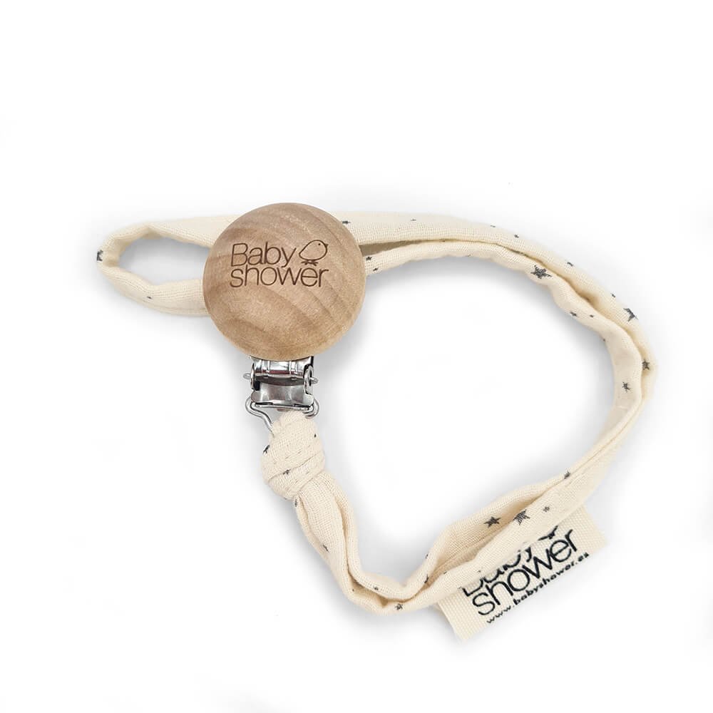 Loin du Plastic Look ! Craquez pour cet attache tétine chic et parfaitement assorti aux vêtements de bébé grâce au large choix de tissus. Ruban à fixer sur la rondelle de la sucette. Avec fermeture à pince. Fait de bois et de tissu de coton imprimé .