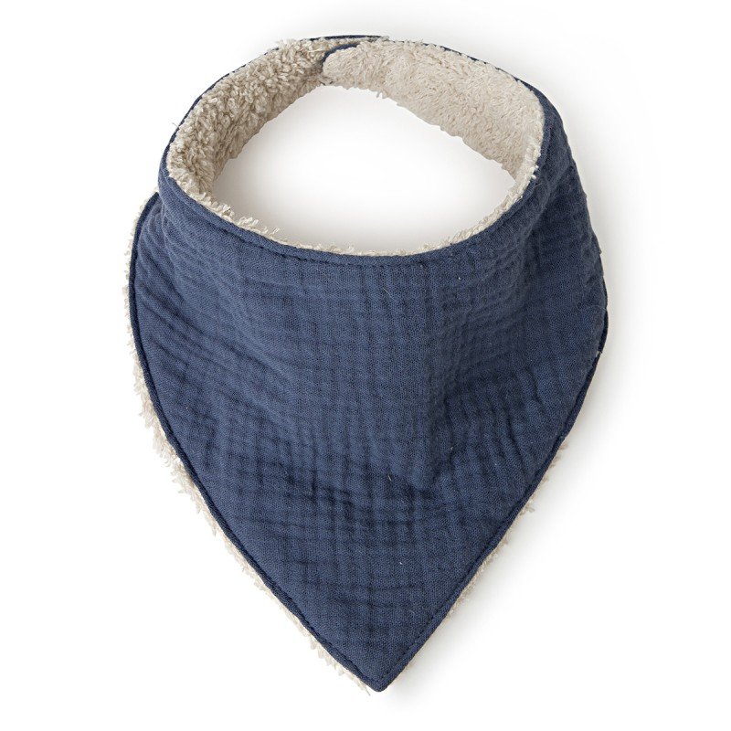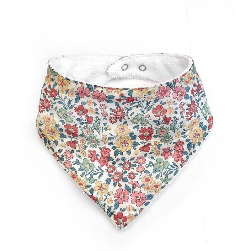 Idéal à partir de 4 mois. Bandana triangulaire en tissu de coton. Son intérieur laminé protège vos vêtements de la bave typique de la période de dentition. Revers en éponge beige. Fermeture velcro.