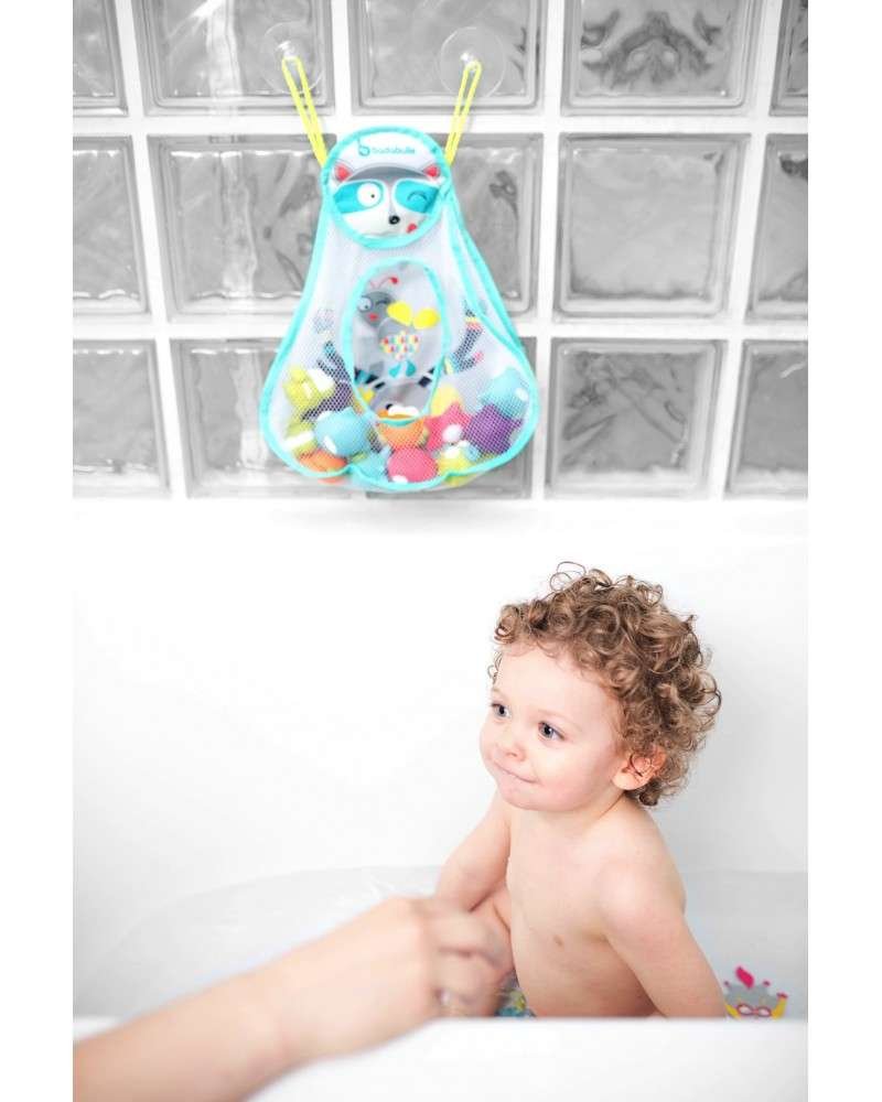 Avec le filet de bain Badabulle, vous pourrez égoutter, et conserver l’ensemble des jouets de bain de bébé. Après avoir déposé les jouets mouillés dans le filet de bain, laissez-les sécher afin d’éviter que de l’eau ne stage à l’intérieur des jouets de votre bout’ de chou