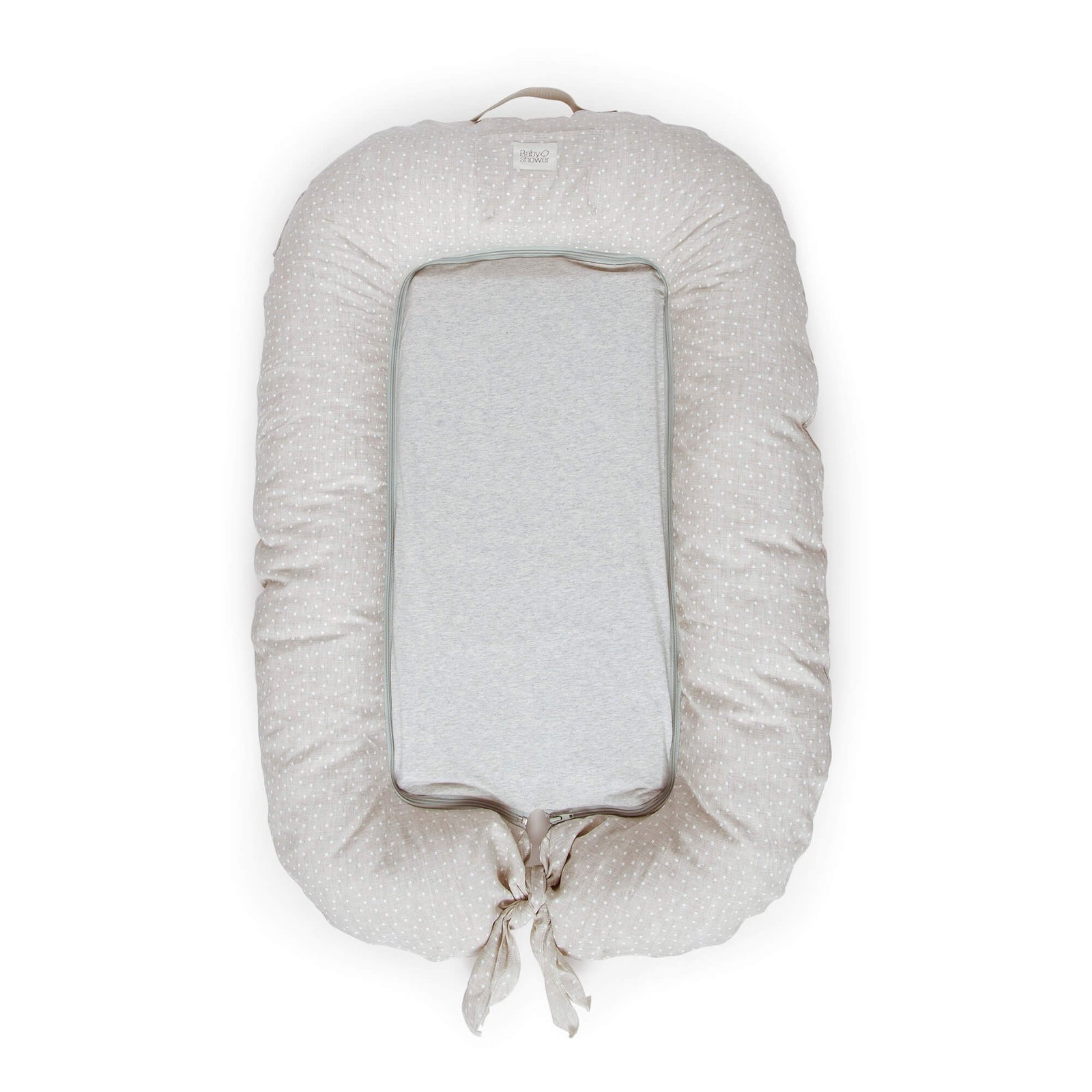 Il peut également servir de mini-berceau de voyage. La base est un matelas en mousse qui peut être retiré grâce à une fermeture à glissière qui transforme le contour en coussin d’allaitement. Sa grande taille lui permet d’être utilisée jusqu’à ce que le bébé ait un an. Vous pouvez ouvrir la partie inférieure lorsque votre bébé est plus grand.