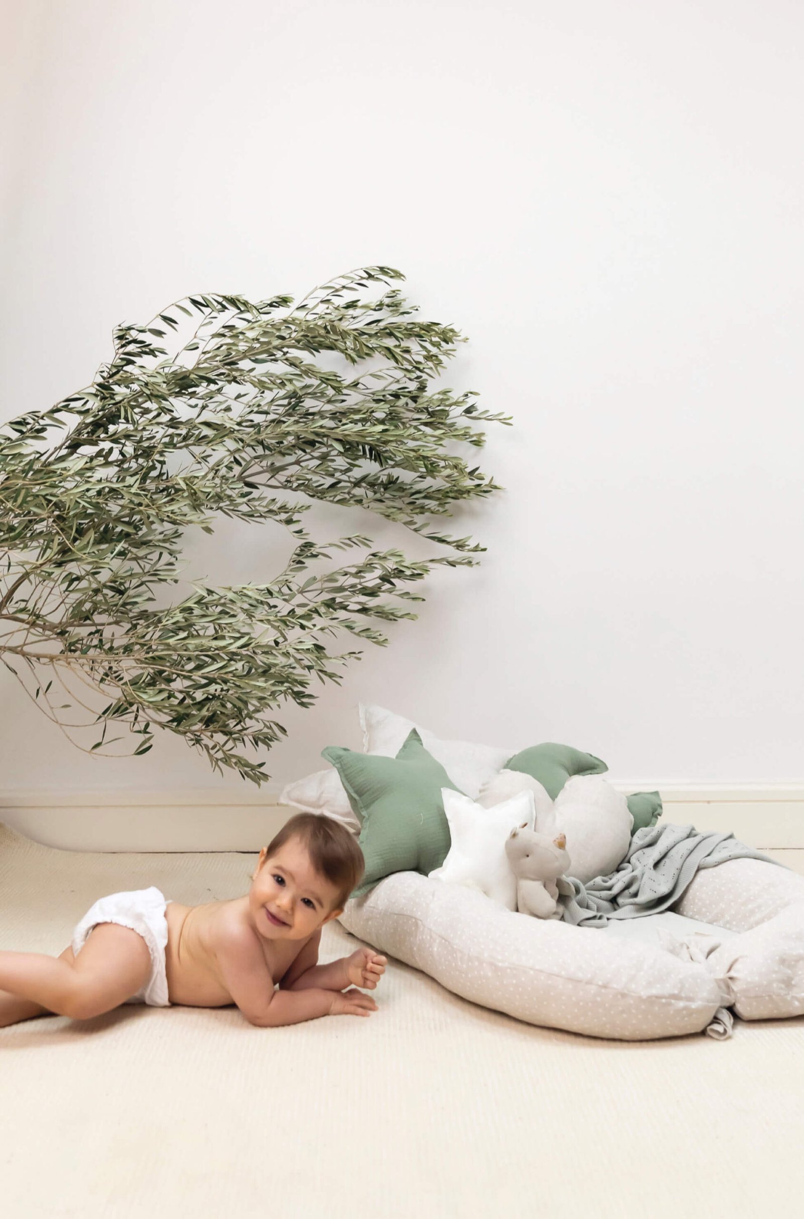 Ce modèle de Babynest est large et constitue également un modèle 3en 1: COUSSIN D’ALLAITEMENT , NID BEBE et TOUR DE LIT . Ce nid pour bébé permettra à votre bébé de dormir en toute sécurité et en toute tranquillité partout.