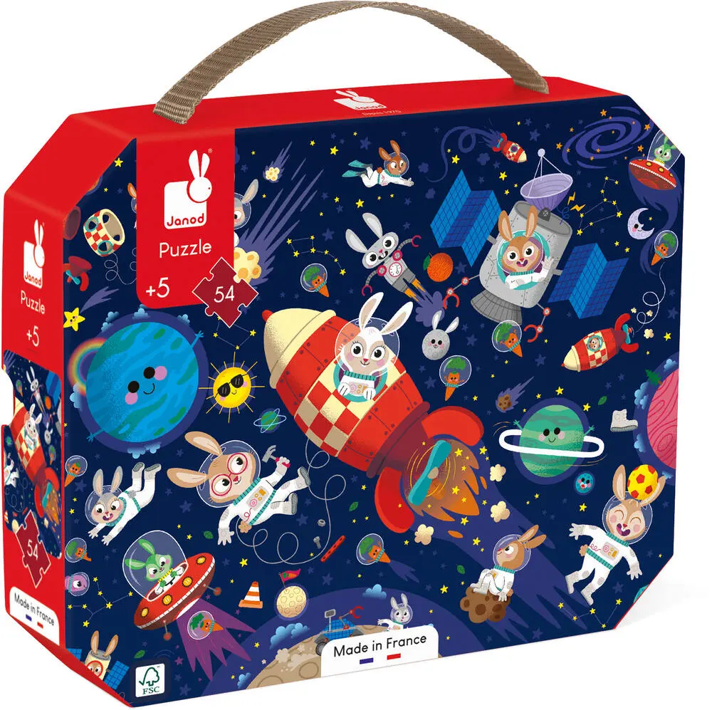 Le tout est vendu dans une jolie valisette avec poignée, pratique pour le rangement et le transport. Avec ce puzzle, les enfants et les adultes peuvent partager un moment de complicité. C’est l’occasion de prendre part à une aventure fun et déjantée et de stimuler l’imagination des plus petits. Alors, prêts à embarquer à bord de la fusée Carotte ? Fabriqué en France, ce puzzle est réalisé avec des encres végétales et du carton FSC™.