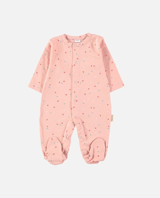 Body à manches longues croisé par le devant et avec des broches. En blanc avec des étoiles bleues et grises et du coton Pima.