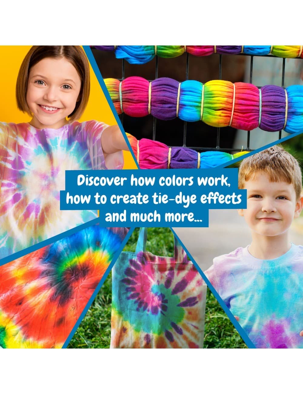 Adoptez votre propre style et devenez tendance avec ce kit créatif de création de mode – Tie Dye ! Apprenez à donner une touche originale et unique à vos vêtements et accessoires grâce aux différentes techniques scientifiques de teinture par nouage !
